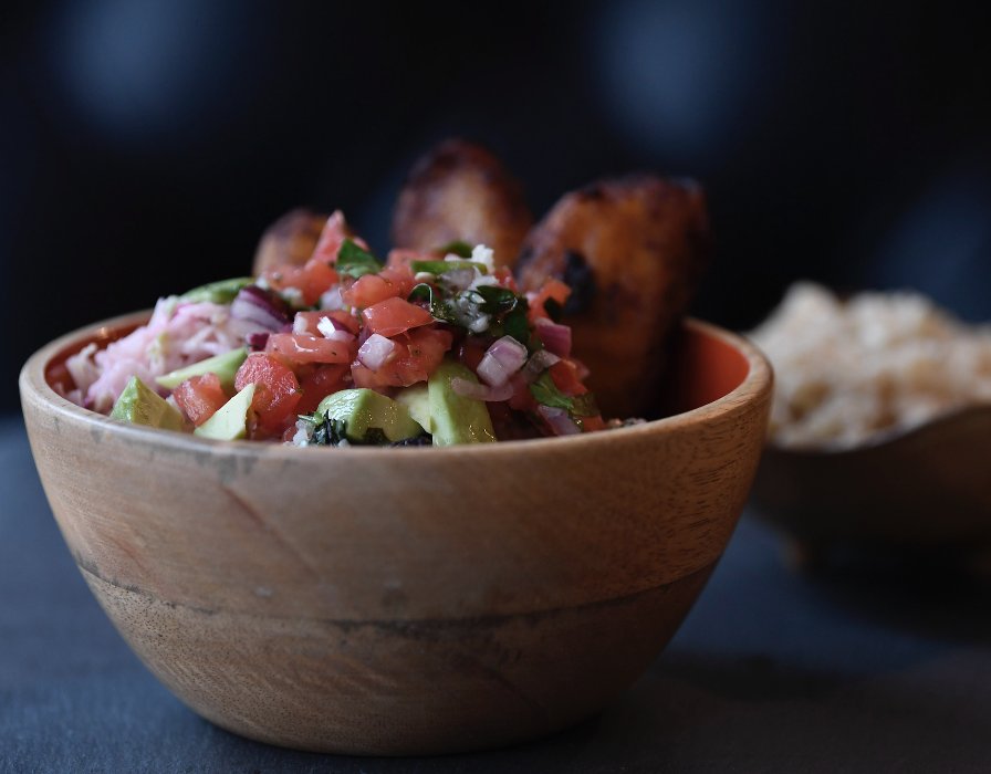 Over meduim eggs, sweet plantains, chorizo, vegetarian chili, Pico de Gallo & avocado